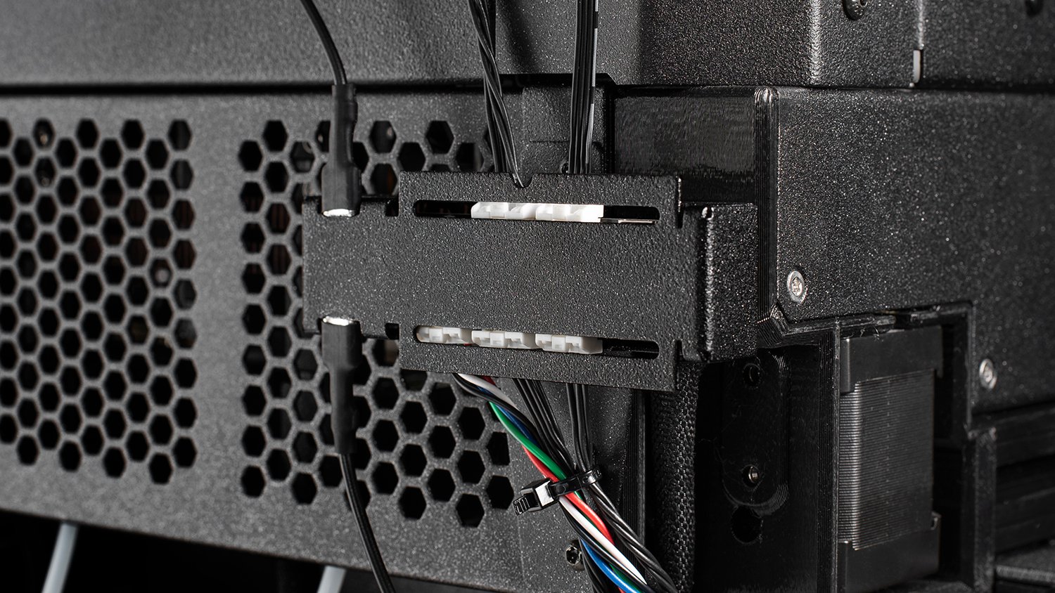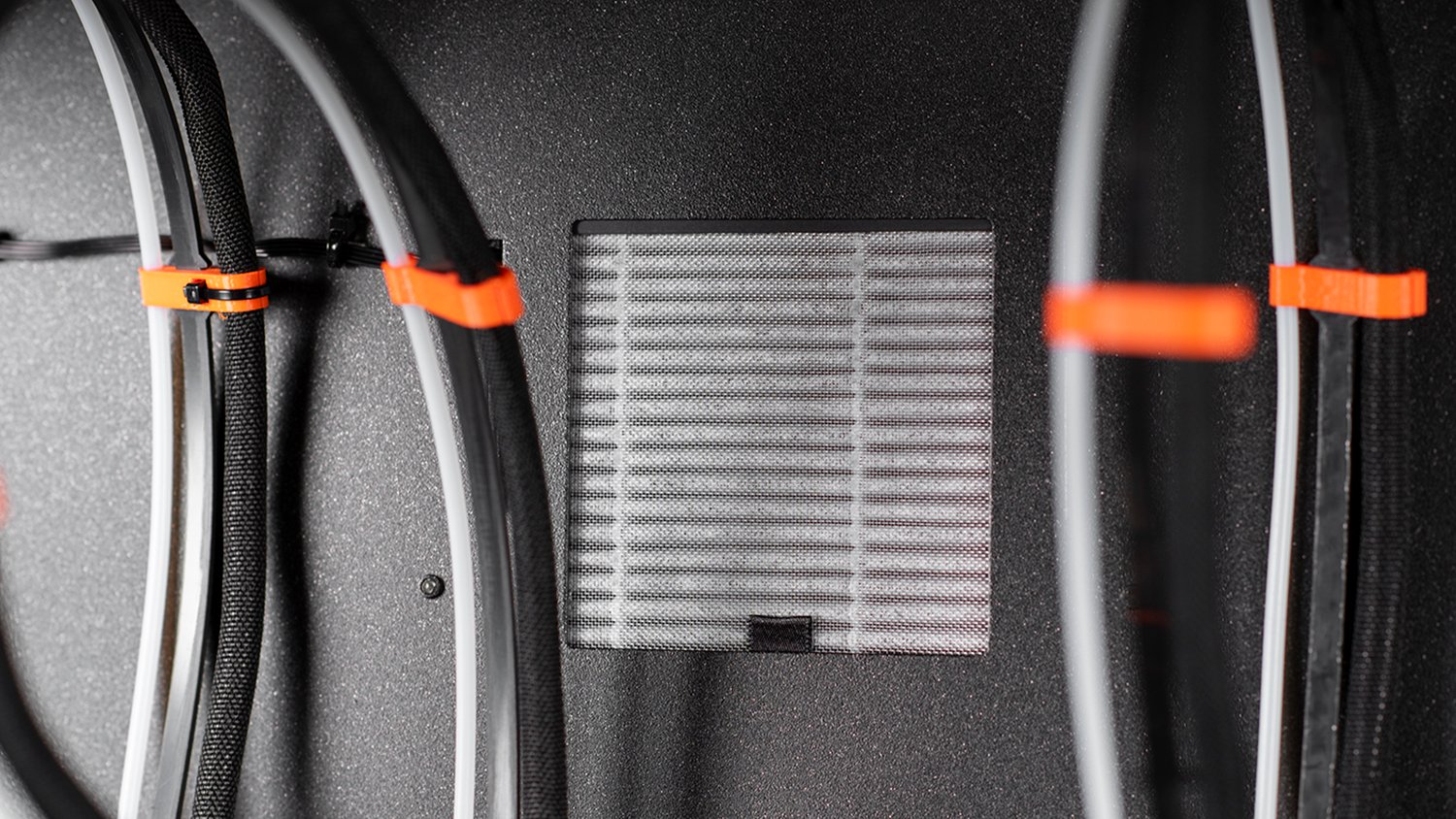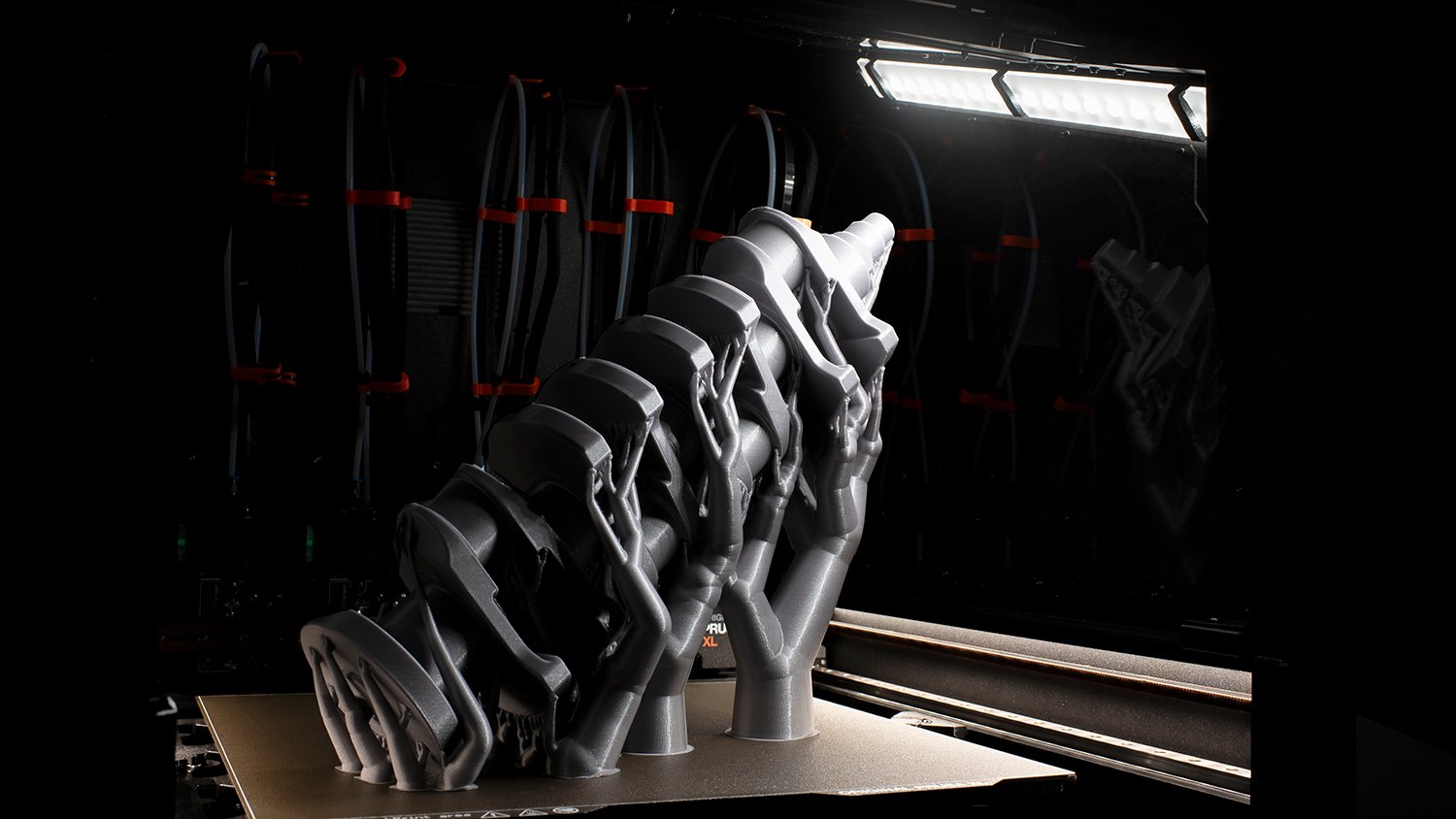 The XL Enclosure is designed for seamless integration with the rest of the printer. Not just the physical parts, but also the software: because the Enclosure is directly connected to the mainboard of the printer, you can configure a number of useful functions directly through the printer’s LCD touch panel. Set up the filtration performance and even post-print filtration duration (e.g. when you print from materials such as ASA or PCCF) so that the system runs for additional time to filter out all particles produced during the print job, control the LED strips and check the lifespan of the HEPA filter easily in the printer’s menu.