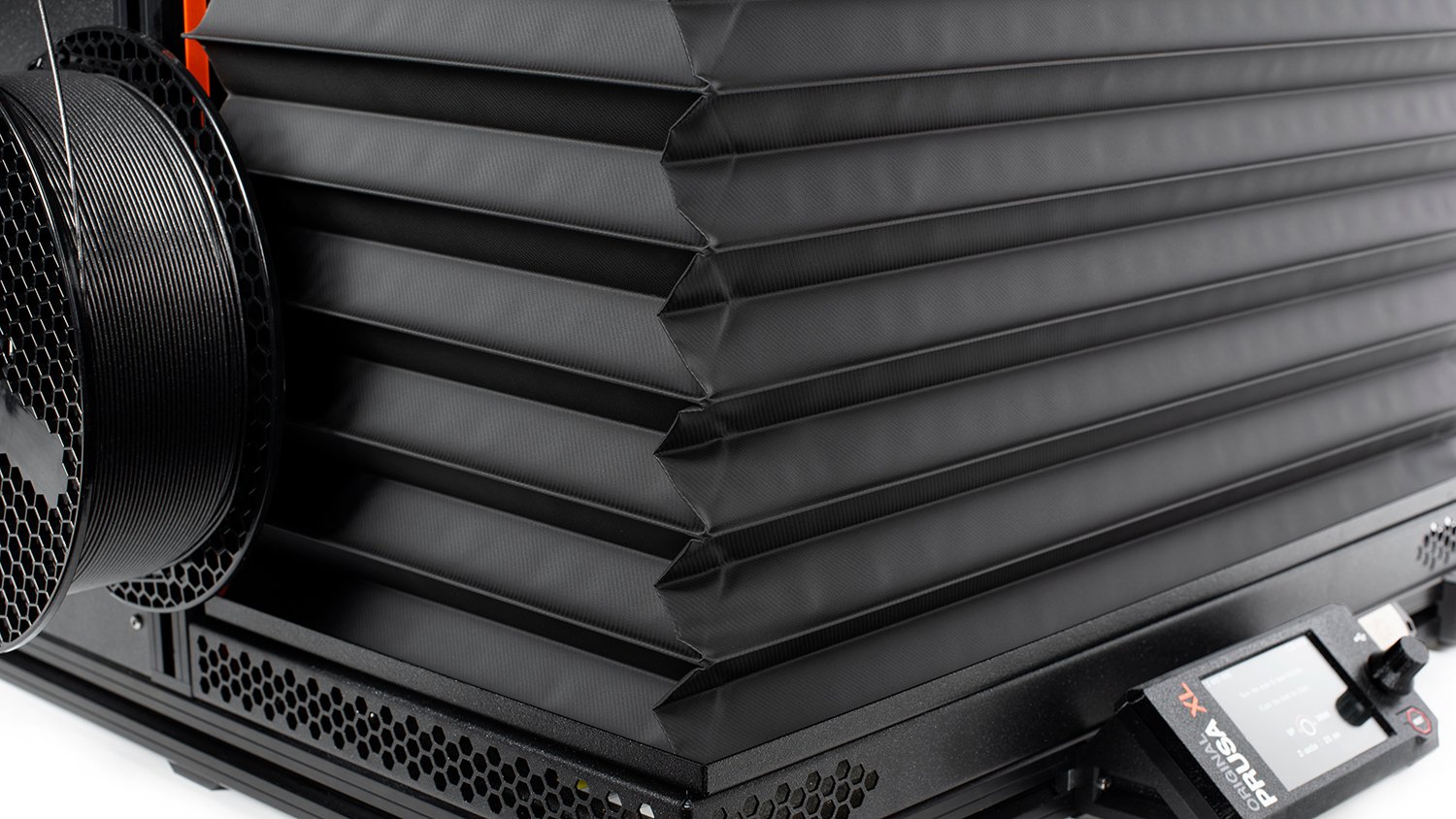 Some materials, such as PLA perform worse in high temperatures. This is why we designed a special magnetic bellows cover, that can be quickly folded, creating much better airflow to maintain optimal conditions for these materials. This ensures you will be able to print any material without limitations. The bellows cover is made of high-quality and durable polyester and polyurethane.