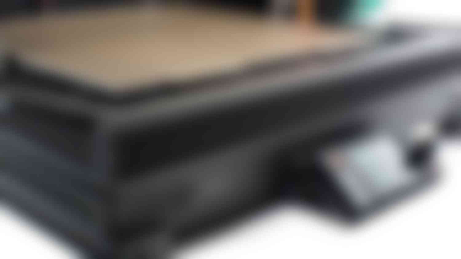 Unlike usual hinged doors, the folded cover doesn’t take up any extra space on the sides or in front of the printer and also gives you much better access to the entire printing area.