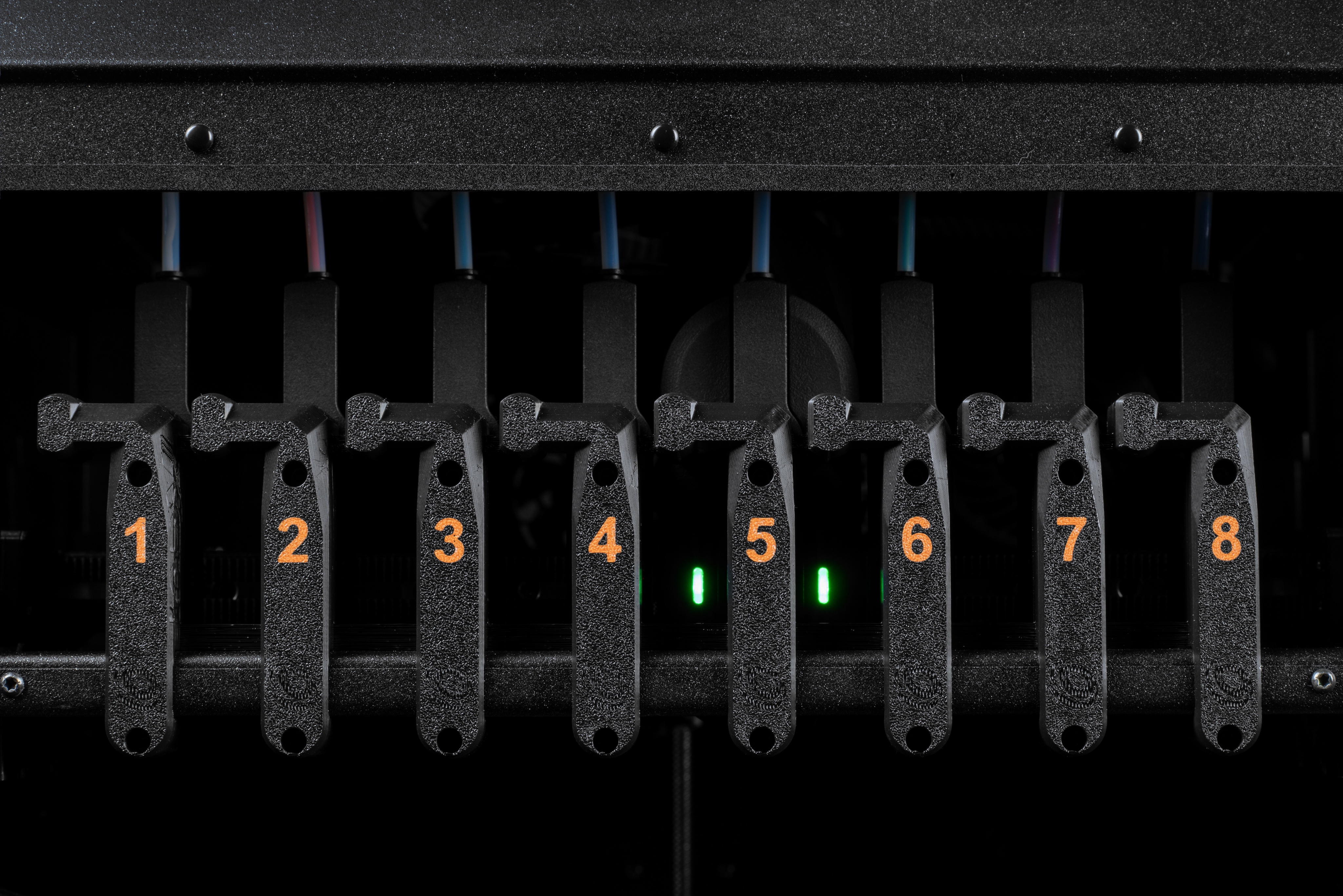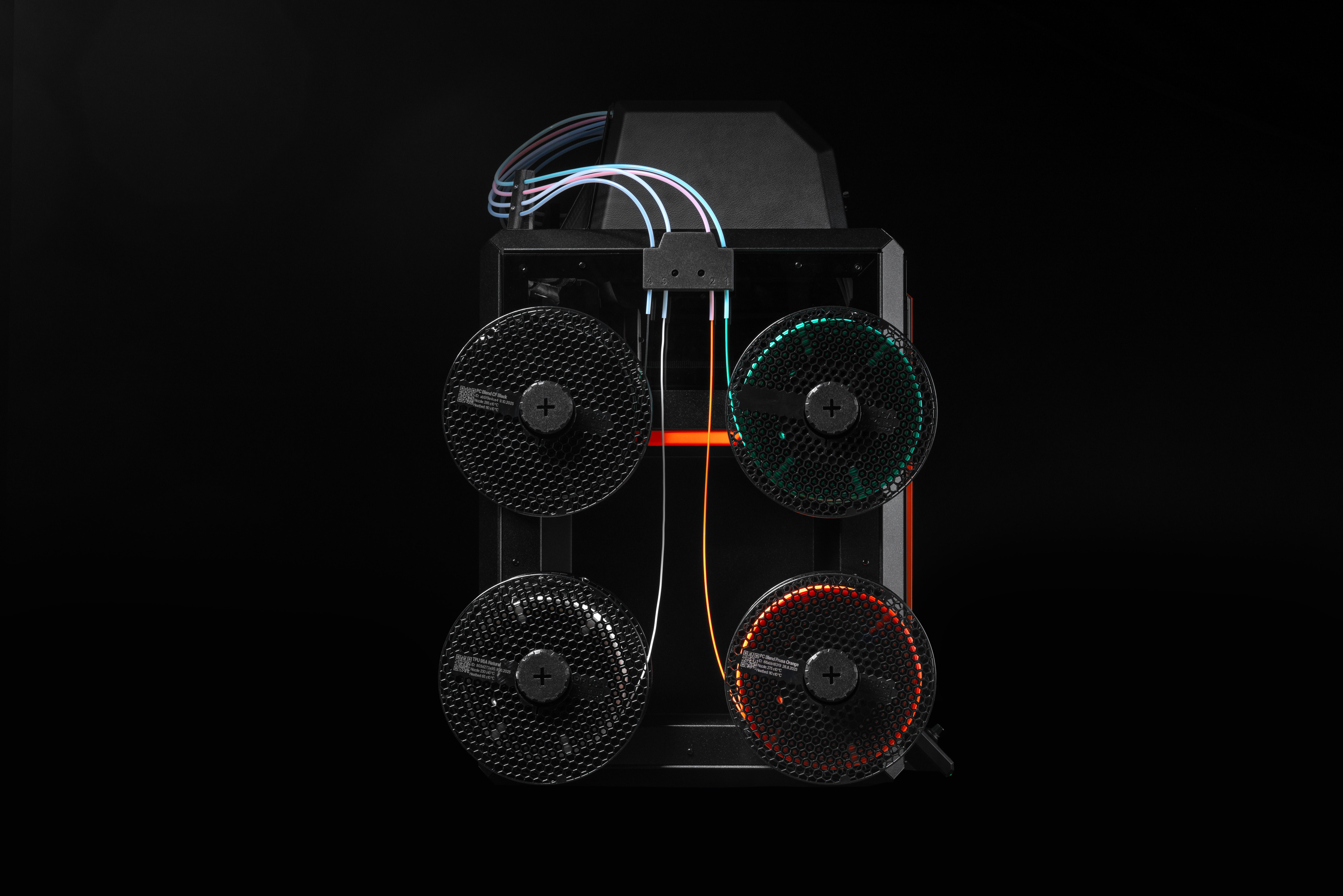 Verwenden Sie bis zu 8 einzelne Werkzeuge. Drucken Sie mit mehr Farben oder Materialien in einem einzigen Auftrag als je zuvor. Alle Filamente sind immer geladen und einsatzbereit.