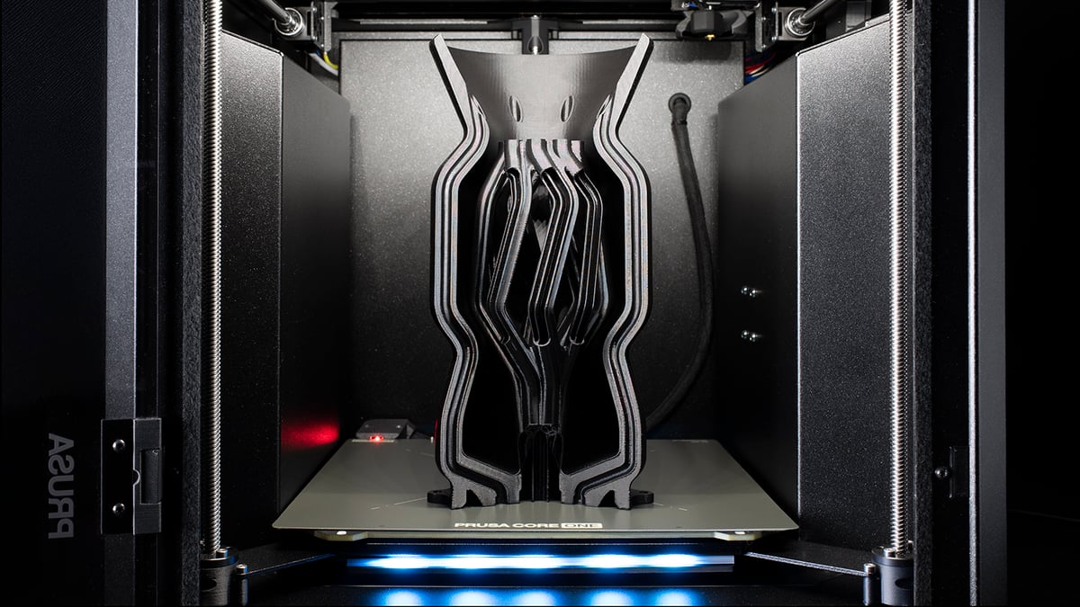 Sie können sicher sein, dass Ihre Modelle mit unseren intern entwickelten, qualitätsorientierten Druckprofilen genau so aussehen werden, wie sie entworfen wurden, mit perfekter Maßgenauigkeit. Der CORE One+ nutzt die Vorteile des verbesserten Nextruder mit 360°-Kühlung, der fehlerfreies Drucken von 75°-Überhängen ermöglicht und sowohl Zeit als auch Material spart.