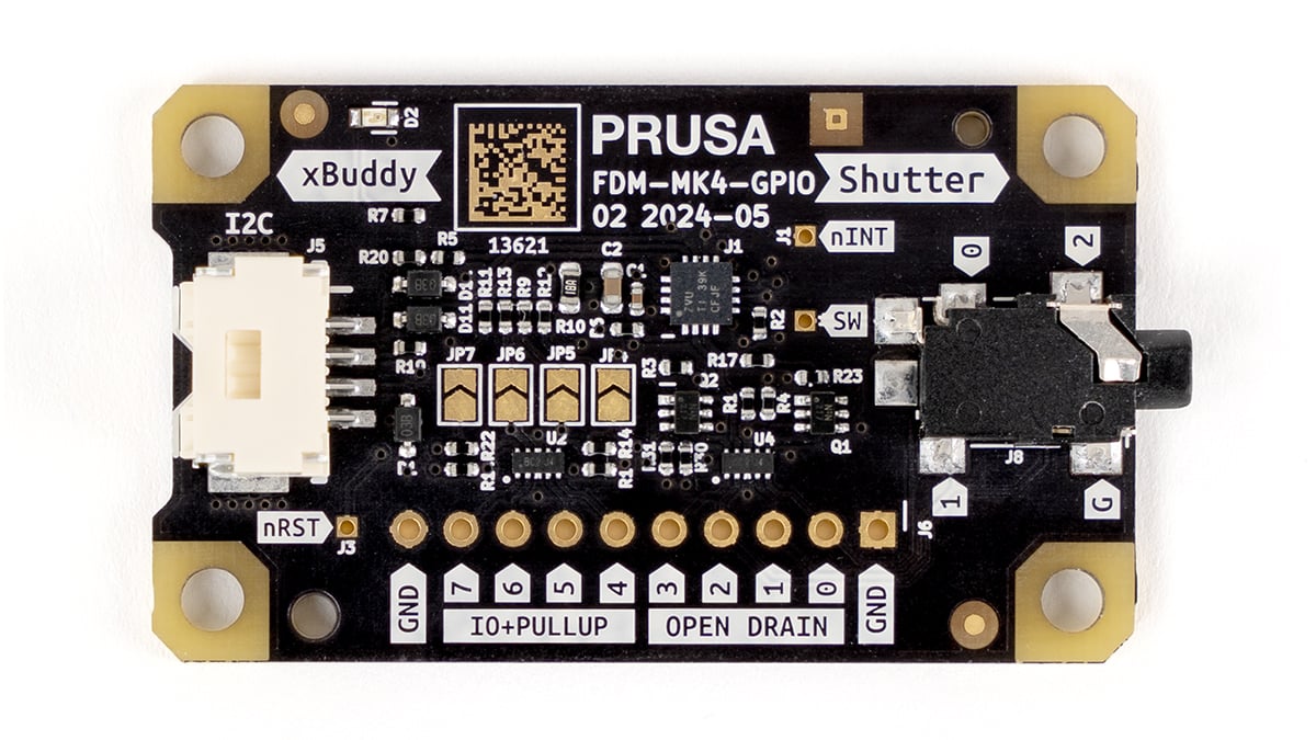 Der MK4S ist mit zwei neuen optionalen Addons für Enthusiasten und Modder kompatibel. Zum einen können Sie mit dem GPIO “Hackerboard” externe Elektronik über G-Befehle steuern. Und wir haben auch ein Beschleunigungsmesser-Addon für diejenigen eingeführt, die umfangreiche Änderungen am Nextruder vorgenommen haben. Weitere Details finden Sie auf den jeweiligen Produktseiten.
