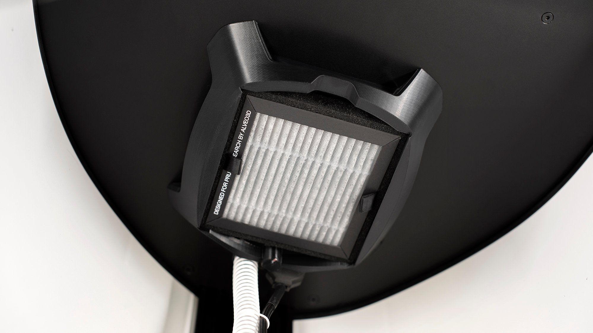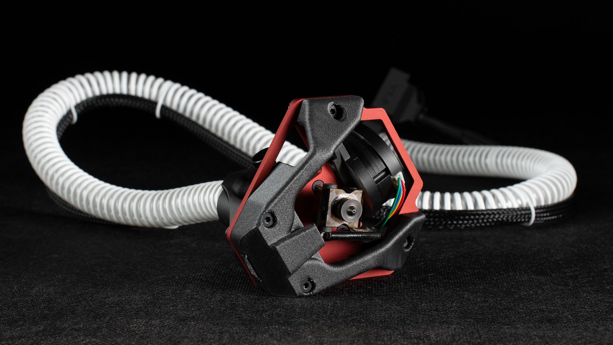 Das einzigartige Luftmanagementsystem wurde für eine Echtzeit-Luftstromsteuerung und optimale Druckqualität bei allen Materialien entwickelt. Der Drucklüfter befindet sich an der Seite des Druckers und drückt die Luft durch einen Schlauch direkt in den leichten Druckkopf, während die Hochgeschwindigkeitsklappe den Luftstrom innerhalb von Millisekunden umleitet - schneller als jeder normale Lüfter es könnte. Dies ermöglicht ein deutlich verbessertes Drucken von Überhängen, während die Schichten im Rest des Drucks nicht unter der Unterkühlung leiden.