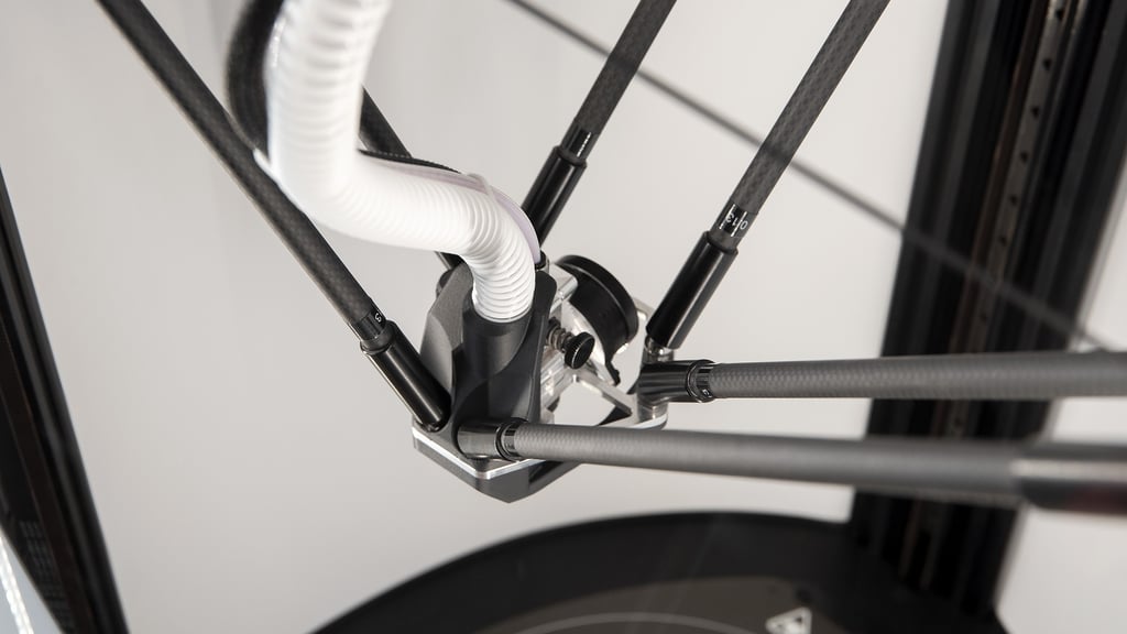 Der HT90 druckt gleichmäßig und maßgenau, ohne die typischen Artefakte, die bei CoreXY oder kartesischen 3D-Druckern auftreten. Das liegt daran, dass die Bewegung des direkt angetriebenen Extruders durch eine koordinierte Verschiebung von drei leichten Armen gesteuert wird, während die gedruckten Objekte stationär bleiben. Ausgestattet mit der Klipper-Firmware und der Input Shaper-Technologie erreicht der HT90 ultraschnelle Geschwindigkeiten bei gleichbleibend hoher Druckqualität über den gesamten zylindrischen Druckbereich.