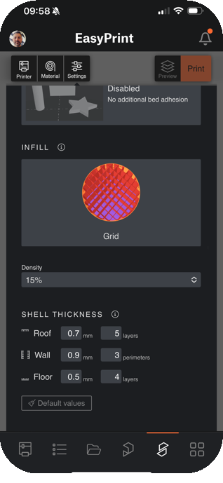 Access EasyPrint directly from the Prusa App. Select the model, adjust basic settings if needed, and send the print job to your printer in moments!